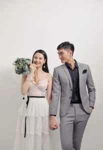 - Với cô dâu: Cô dâu thường chọn váy cưới trắng hoặc màu pastel như hồng nhạt, xanh nhạt hoặc màu kem. Váy cưới có thể là kiểu cổ điển với đuôi dài hoặc đuôi ngắn. Hoặc cũng có thể lựa chọn trang phục với thiết kế đơn giản hơn. Cô dâu có thể kết hợp váy cưới với giày cao gót hoặc giày bệt . Ngoài ra, cô dâu nên chọn trang sức, phụ kiện tạo nên sự hài hòa với trang phục.